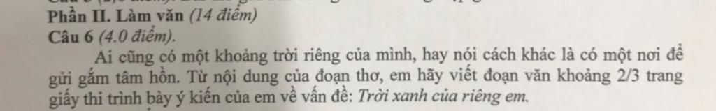 giấy thi trình bày ý kiến của em về vấn đề: Trời xanh của riêng em.