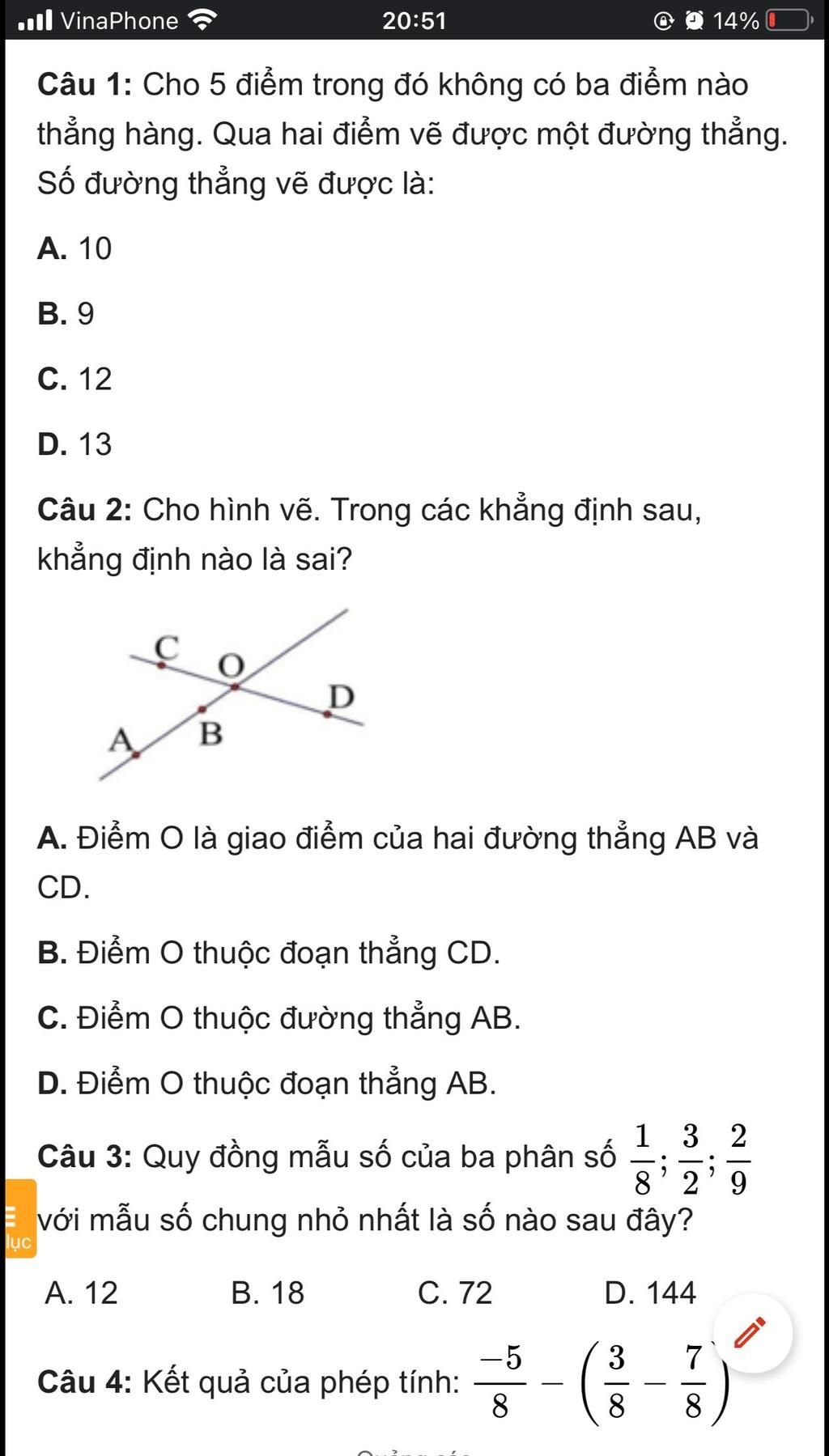 `O∈` đường thẳng `AB`, không phải đoạn thẳng `AB`