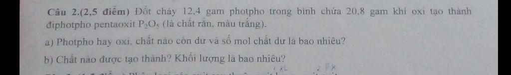 \dfrac{{{n_P}}}{4} < \dfrac{{{n_{{O_2}}}}}{5} \Rightarrow {O_2} \text{ dư } \\
