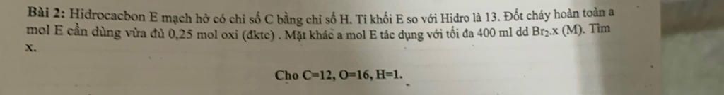 Gọi công thức nguyên của E là: $\rm (CH)_n$.