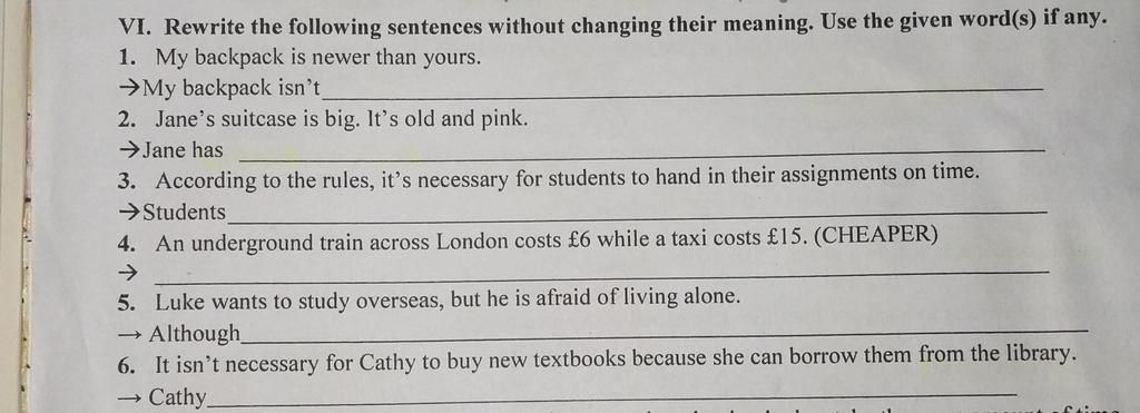 `6)` Cathy doesn't have to buy new textbooks because she can borrow them from the library.