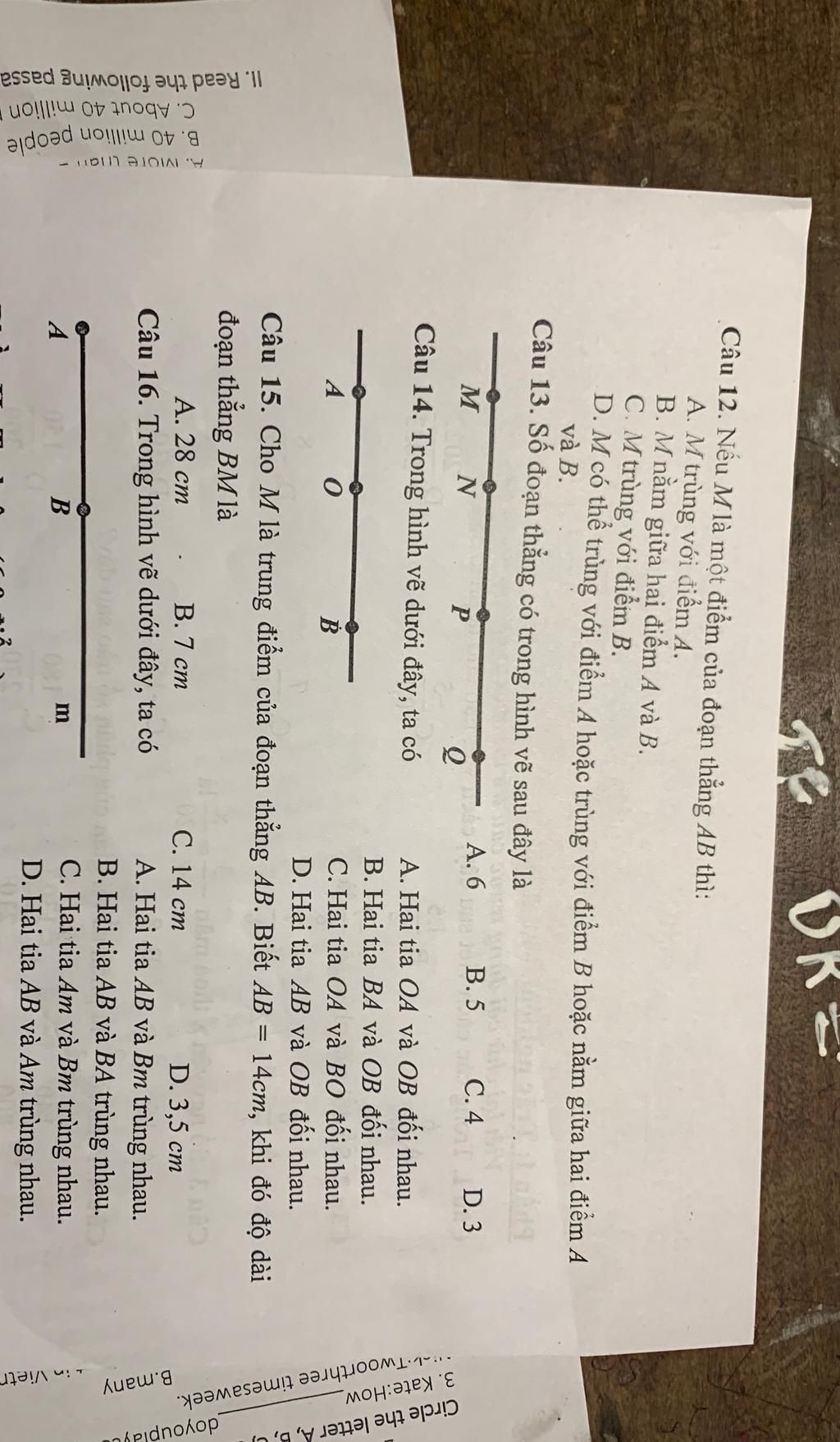 Vì là trung điểm thì chia AB ra làm 2 nên MB hay MA thì chia ra làm 2 bằng 7cm