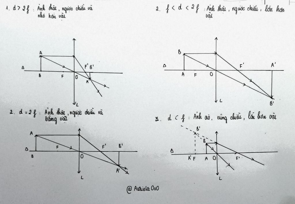 ` d > 2f `: Ảnh là ảnh thật, ngược chiều và nhỏ hơn vật.