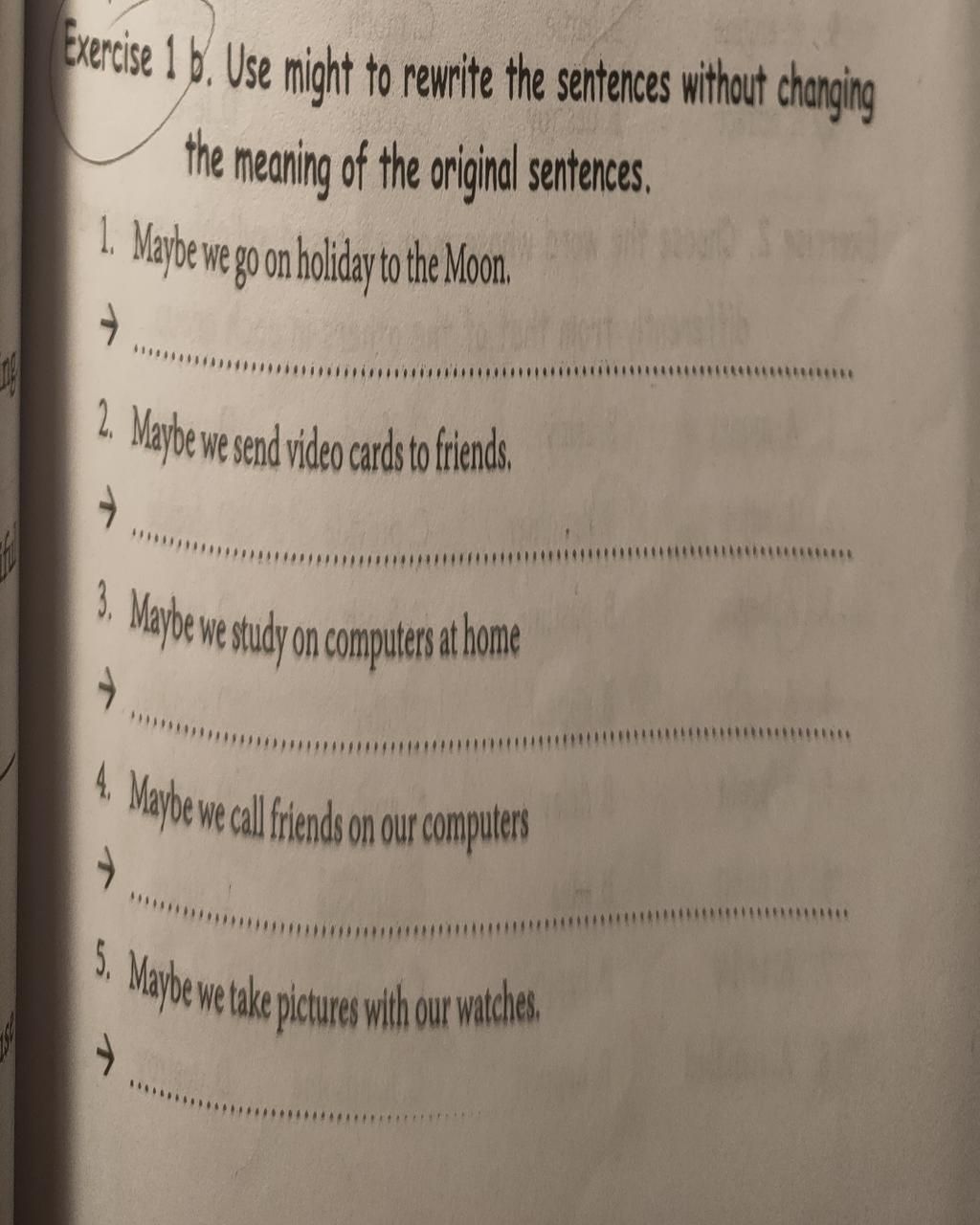 Exercise 1 b. Use might to rewrite the sentences without changing