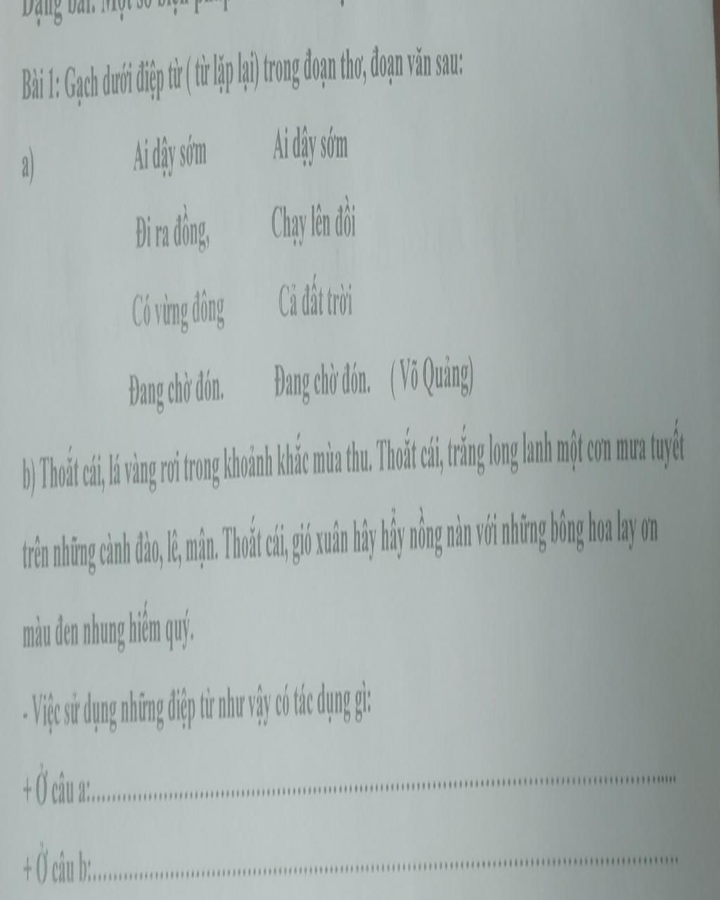 a) gạch dưới điệp từ: