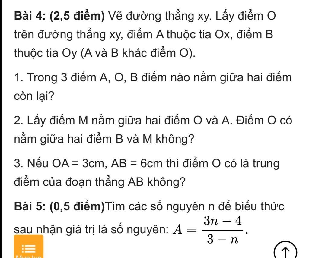 2. Lấy điểm M nằm giữa hai điểm O và A. Điểm O có