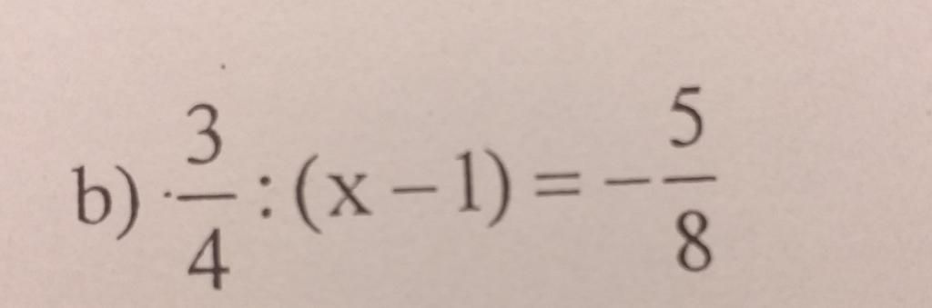 `b)` `3/4:(x-1)=-5/8`