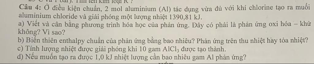 2 mol AlCl3 toả ra 1390,81 kJ