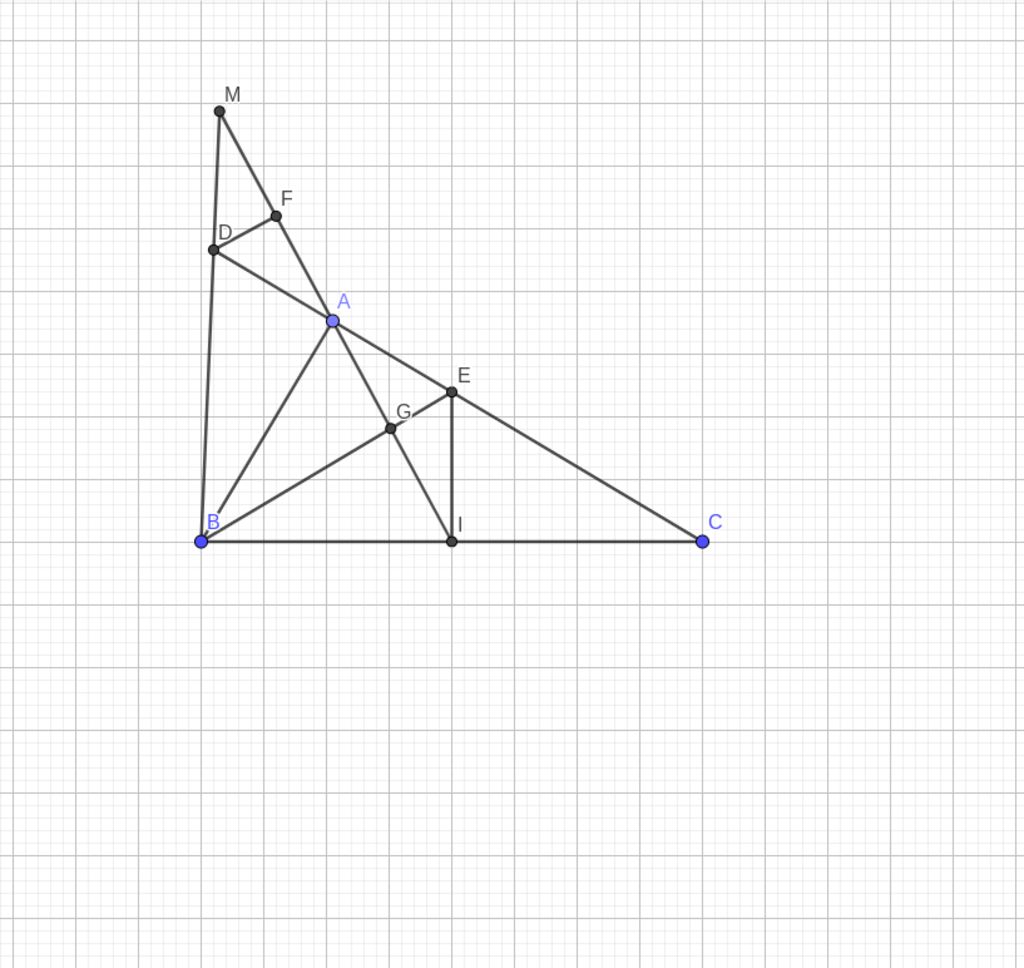 b.Ta có: $\Delta BAC$ vuông tại $A, I$ là trung điểm $BC$