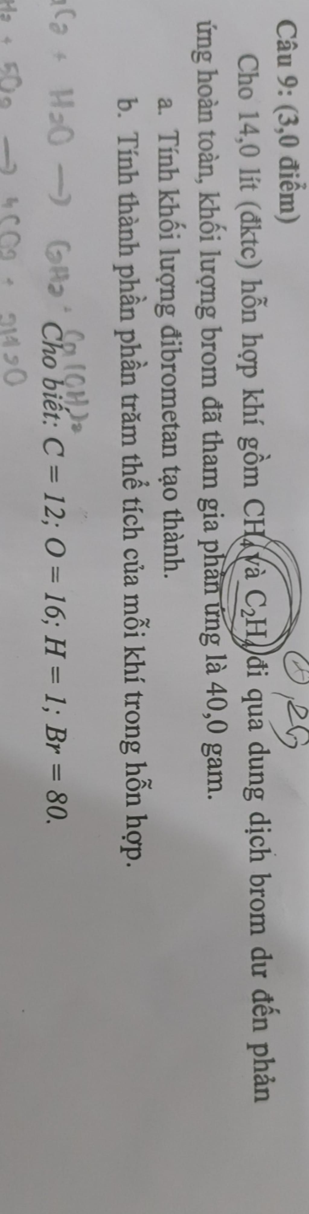 b. Từ PTPƯ → $n_{C_{2}H_{4}}$ = $n_{Br_{2}}$ = 0,25 mol