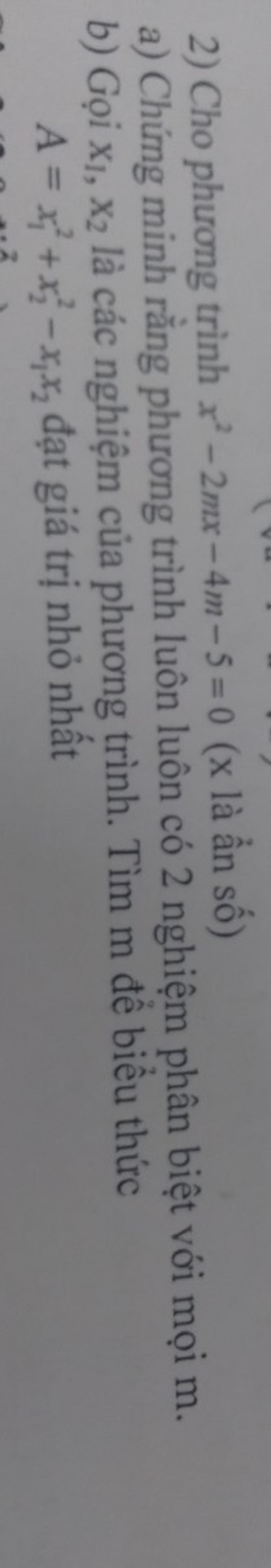 2) Cho phương trình x – 2mx-4m-5 = 0 (x là ẩn số)