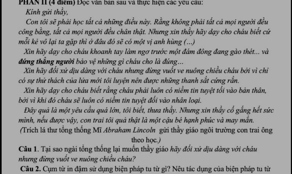(4 điểm) Đọc văn bản sau và thực hiện các yêu cầu: