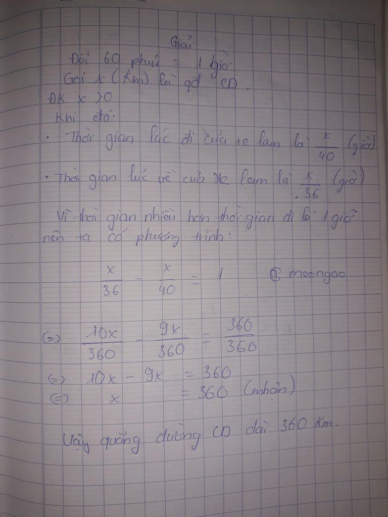 Thời gian Lam đi từ C đến D là : t2 = x/36 (h)