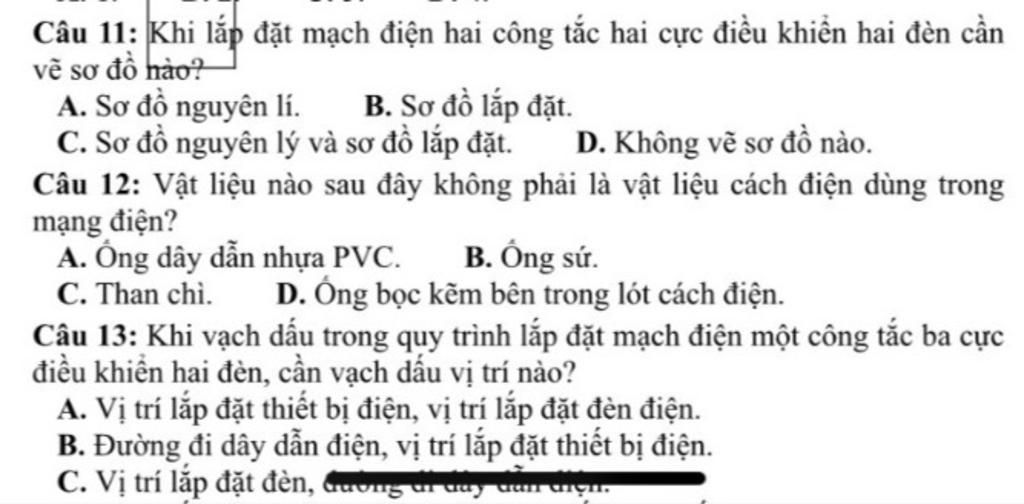 Câu 11. C. Sơ đồ nguyên lí sơ đồ lắp đặt