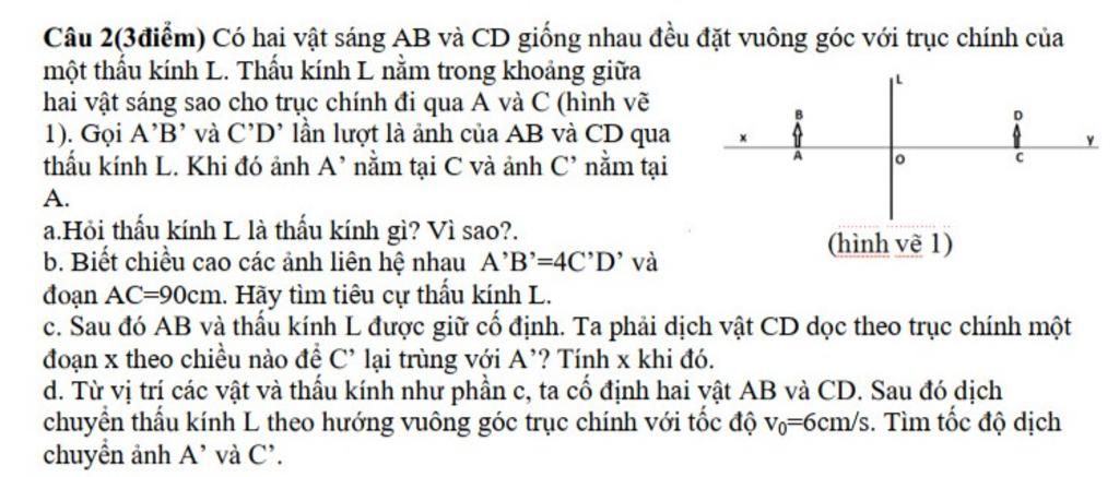 Câu 2(3điểm) Có hai vật sáng AB và CD giống nhau đều đặt vuông góc với trục chính của