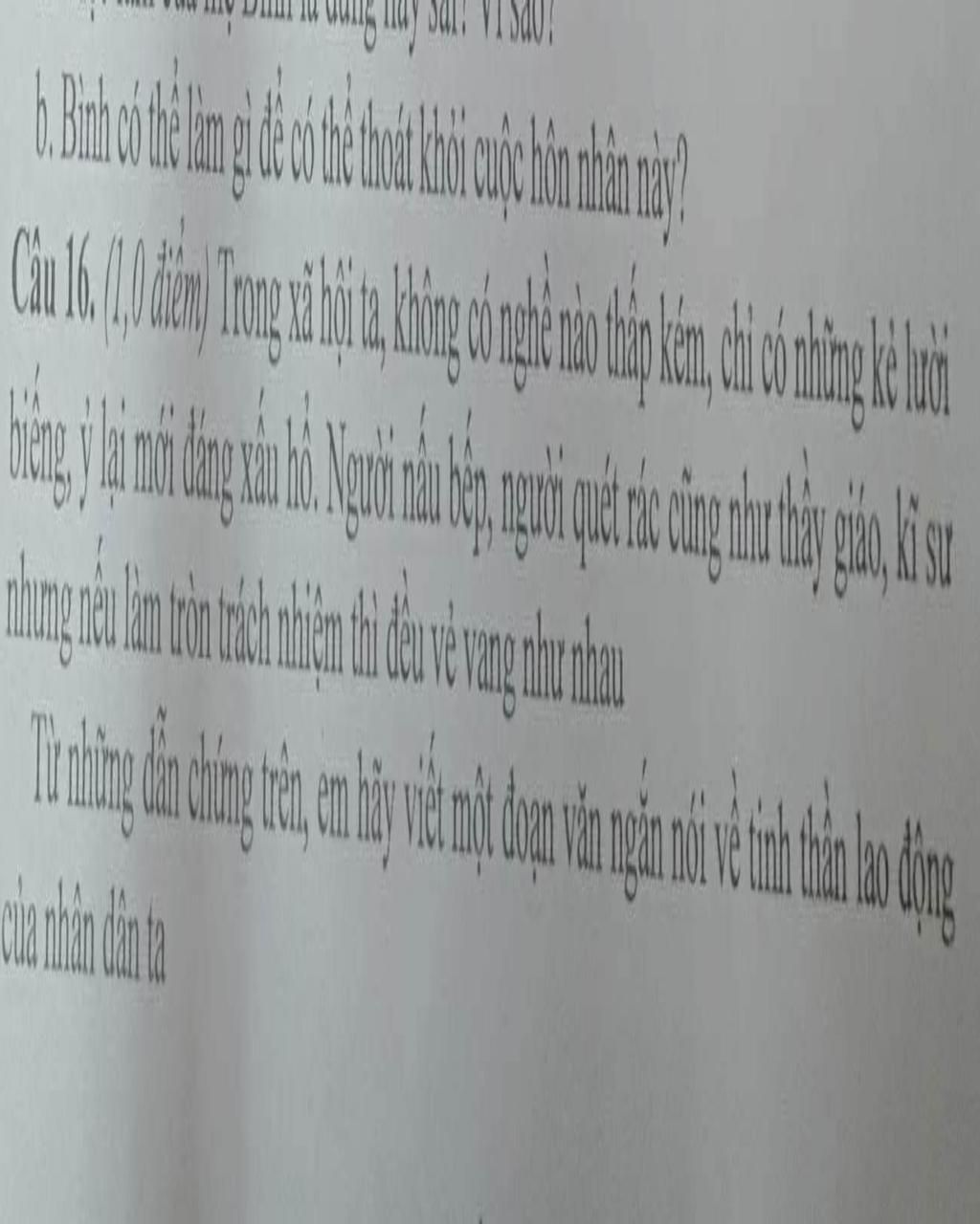 Tinh thần lao động của nhân dân ta luôn được khẳng định qua tất cả các nghề và công việc. Trong mắt người Việt, không có nghề gì là thấp kém hoặc cao quý, tất cả đều được coi là bổ ích và cần thiết cho xã hội. Người đầu bếp, người quét rác, hay các nghề khác cũng đều được trân trọng nếu làm việc với trách nhiệm và lòng tự tôn. Tuy nhiên, những kẻ lười biếng, ỷ lại mới là người bị xấu hổ trong mắt xã hội. Tôi tin rằng tinh thần lao động đóng vai trò quan trọng trong việc phát triển đất nước và xây dựng một xã hội văn minh, giàu đẹp và bền vững.