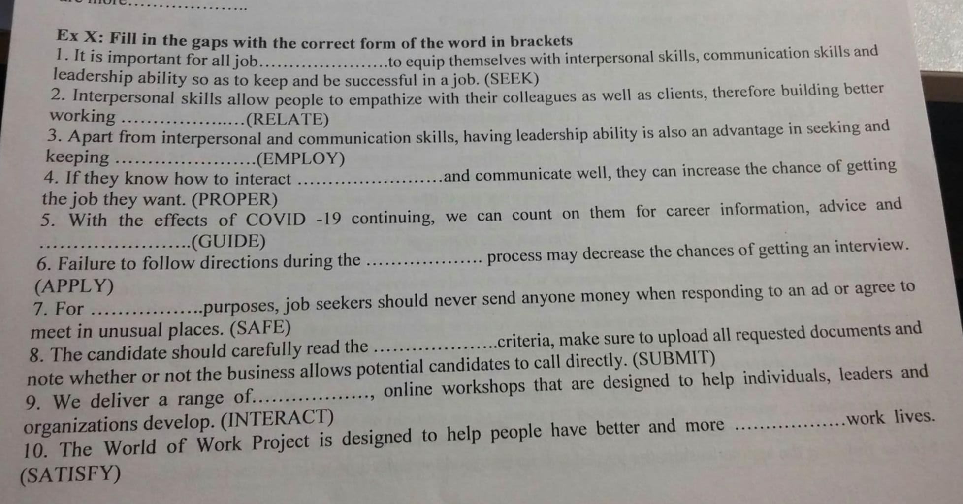 Ex X: Fill in the gaps with the correct form of the word in brackets