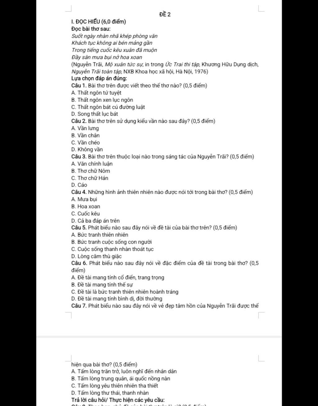 I. ĐỌC HIỂU (6,0 điểm)