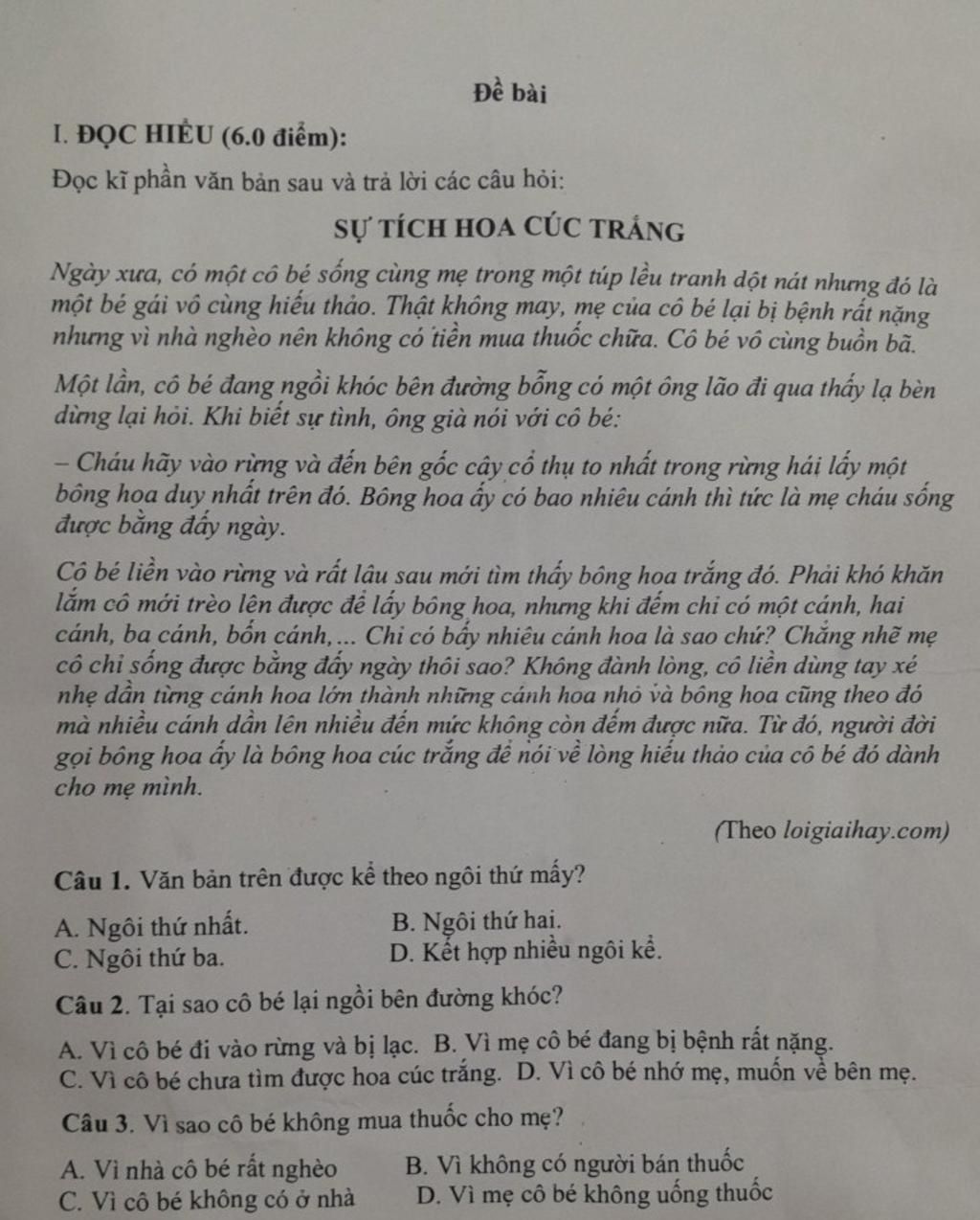 Đọc kĩ phần văn bản sau và trả lời các câu hỏi:
