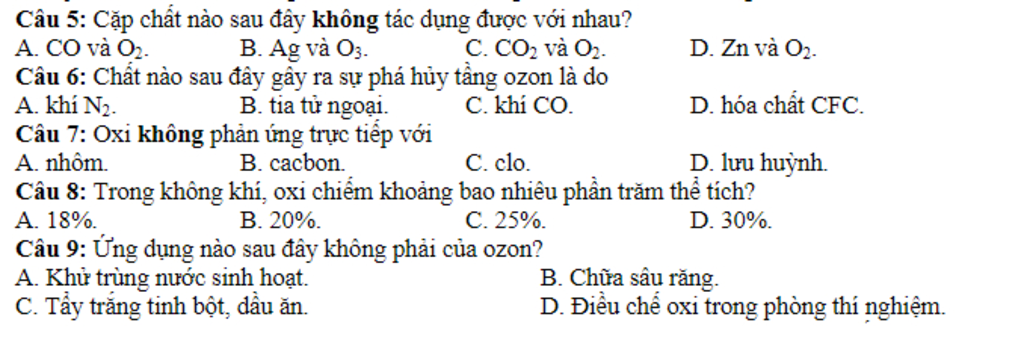 Câu 6: Chất nào sau đây gây ra sự phá hủy tâng ozon là do