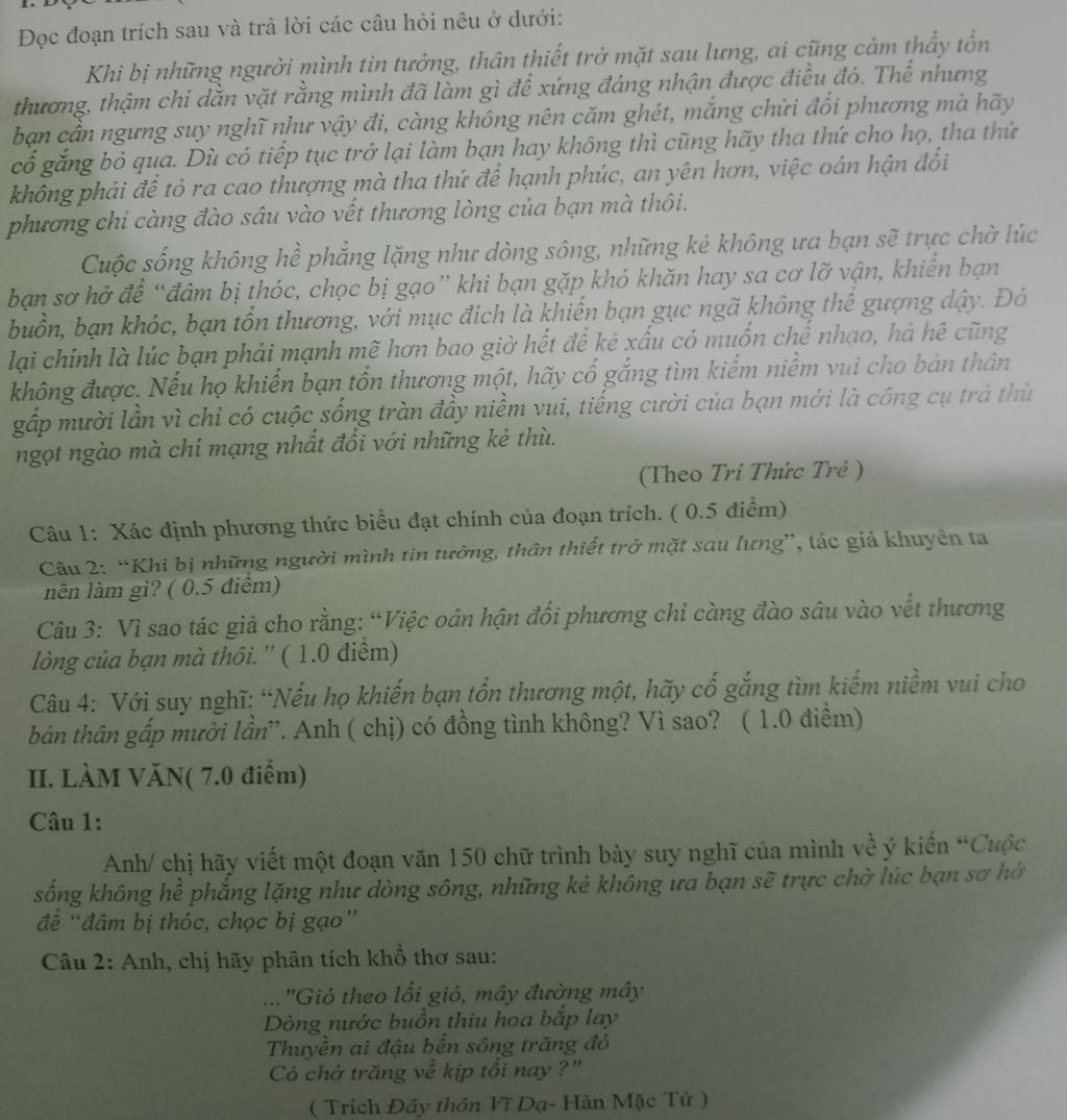 CÂU 3: Khi người thân thiết của mình đâm sau lưng mình mà mình chỉ biết oán hận họ thì dẫn sẽ mất đi mối quan hệ thân thiết đó, và đặc biệt là nó sẽ ảnh hưởng đến đời sống tinh thần của chính bạn, khiến bạn không được thoải mái và mất niềm tin vào các mối quan hệ cũng như với mất niềm tin với những người xung quanh, khiến cuộc sống của bạn trở nên cô độc. Tác giả cho rằng: “Việc oán hận đối phương chỉ càng đào sâu vào vết thương lòng của bạn mà thôi.”