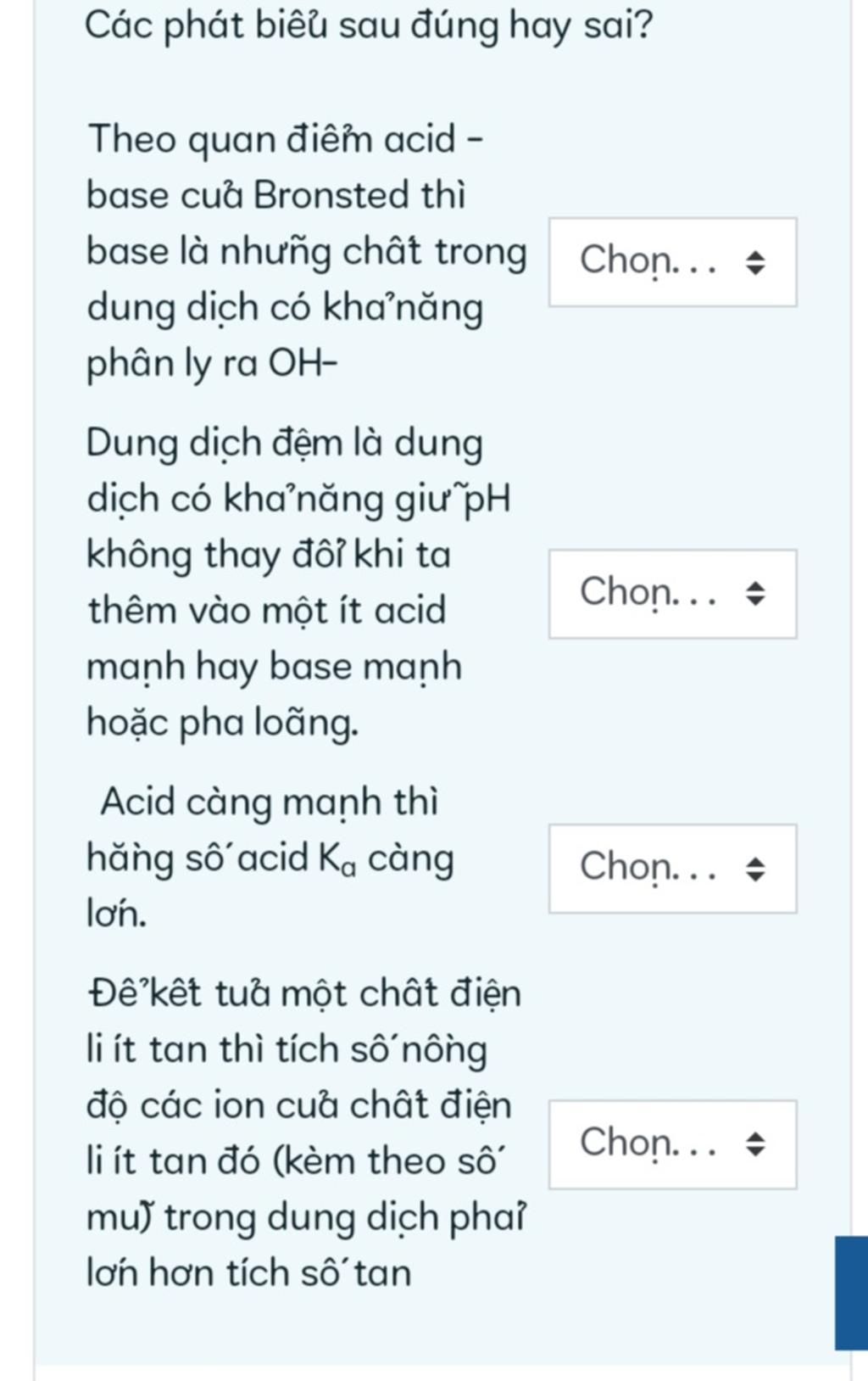 (1) sai, bronsted là thuyết nâng cao, Bazo là chất có khả năng nhường electron
