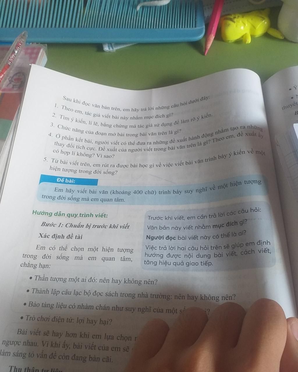 Câu 5 : Từ bài viết trên, em rút ra được bài học gì về việc viết bài văn trình bày ý kiến về một hiện tượng trong đời sống ?