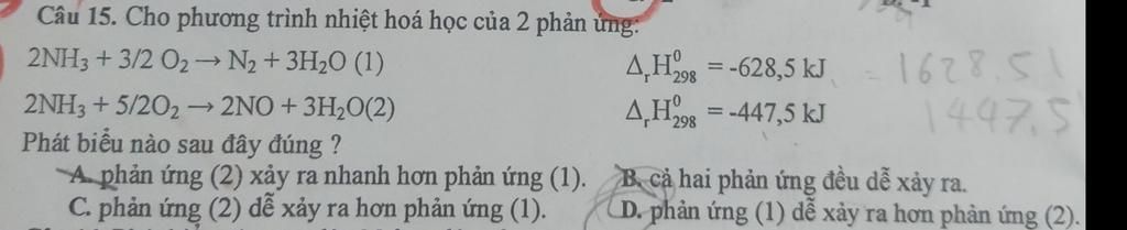 $\rm D.$ phản ứng $\rm (1)$ xảy ra hơn phản ứng $\rm (2).$
