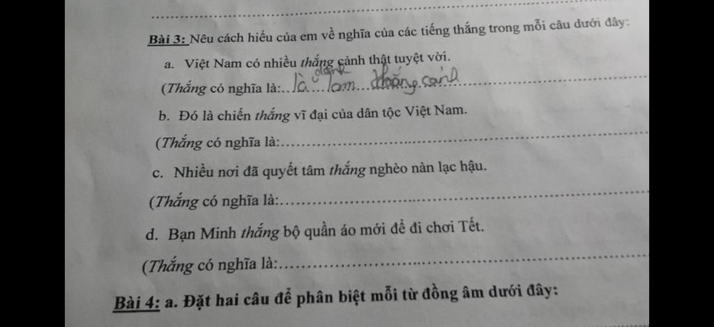b. ( Thắng có nghĩa là: chiến thắng lớn lao)