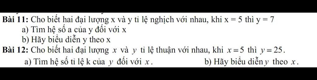 Hệ số tỉ lệ $k$ của $y$ đối với $x$ là $k=\dfrac{y}{x}=\dfrac{25}{5}=5$