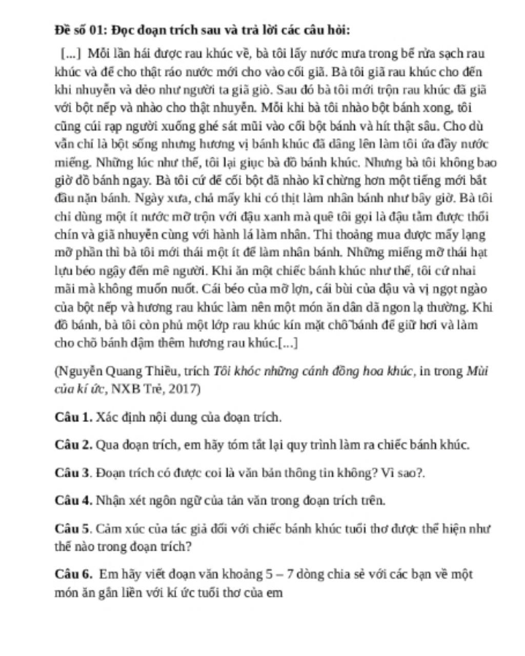 Đề số 01: Đọc đoạn trích sau và trả lời các câu hỏi: