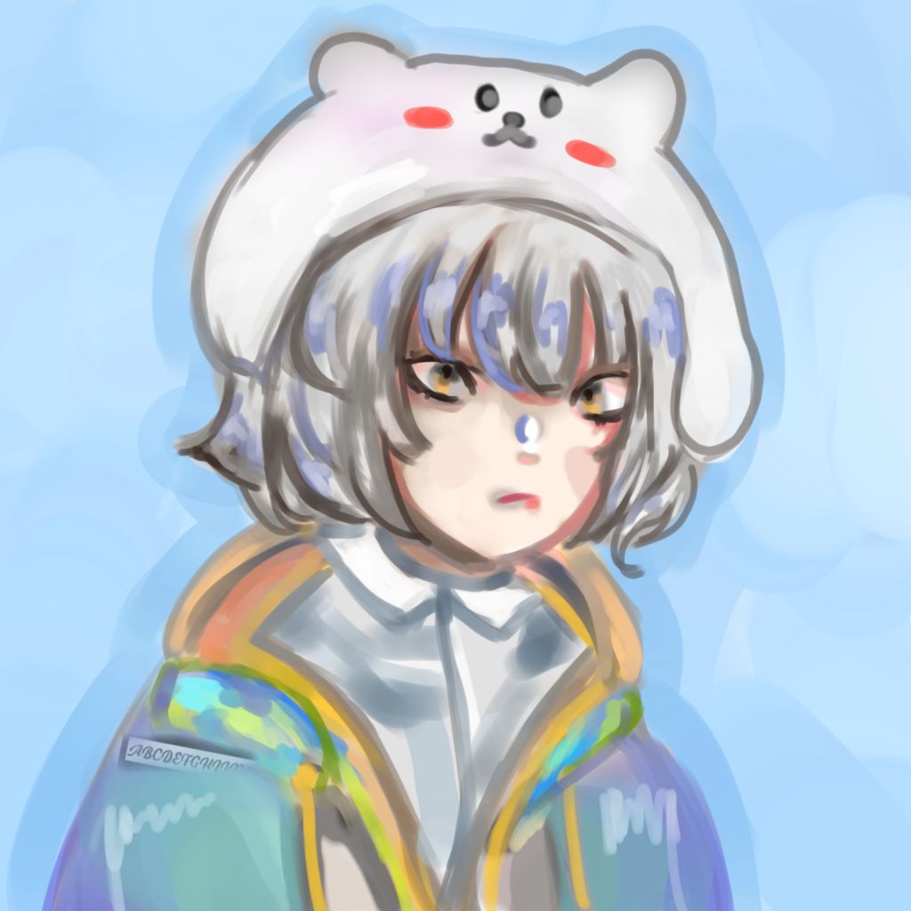 Mắt hơi thâm trên tóc còn có cái gì đen đen ý ạ, cái chữ bên tay áo hơi thiếu thì phải( Em chỉ góp ý thui ạ) 🥺