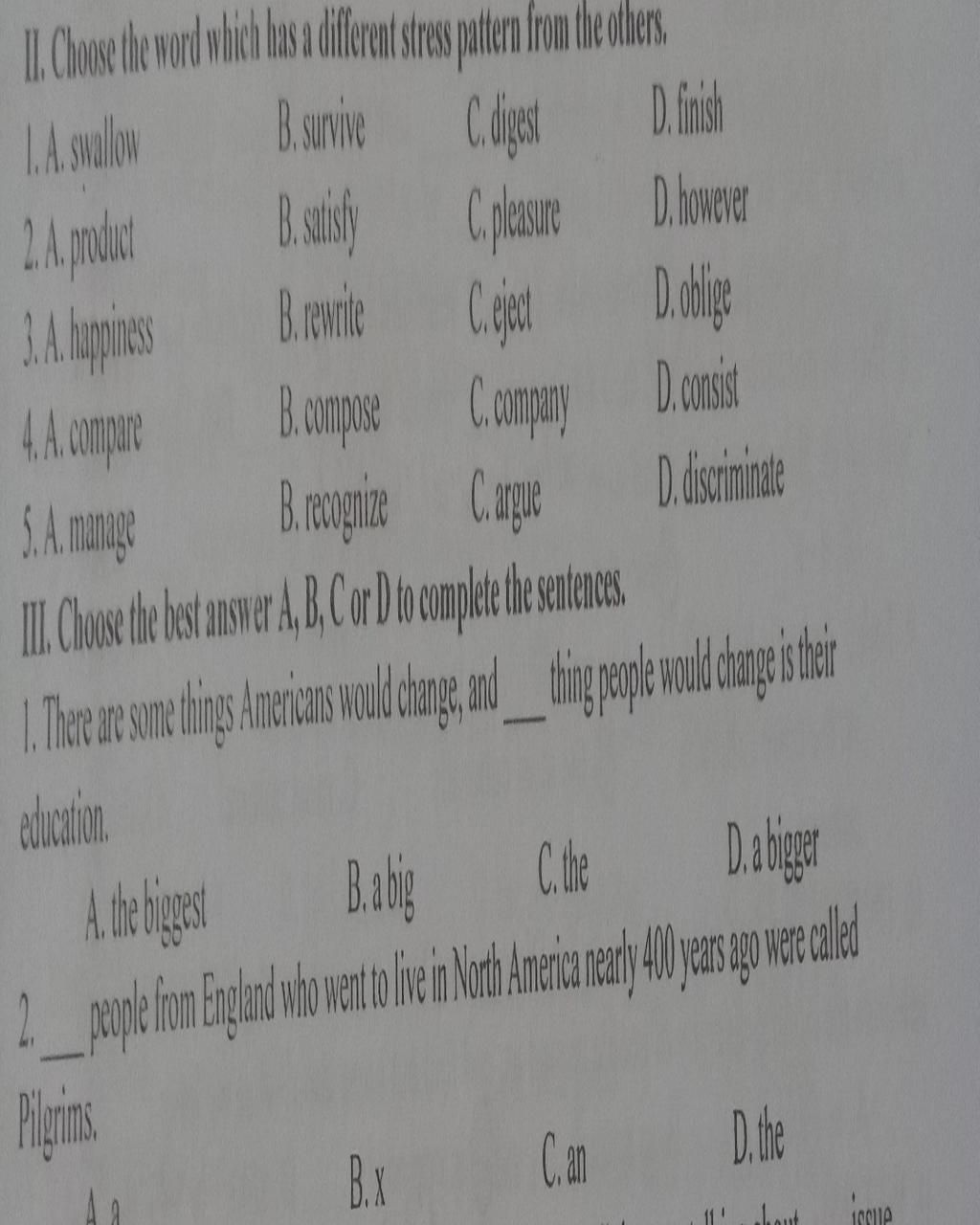 `1.` (Không có đáp án đúng ; A, D nhấn âm 1 còn B, C nhấn âm 2)