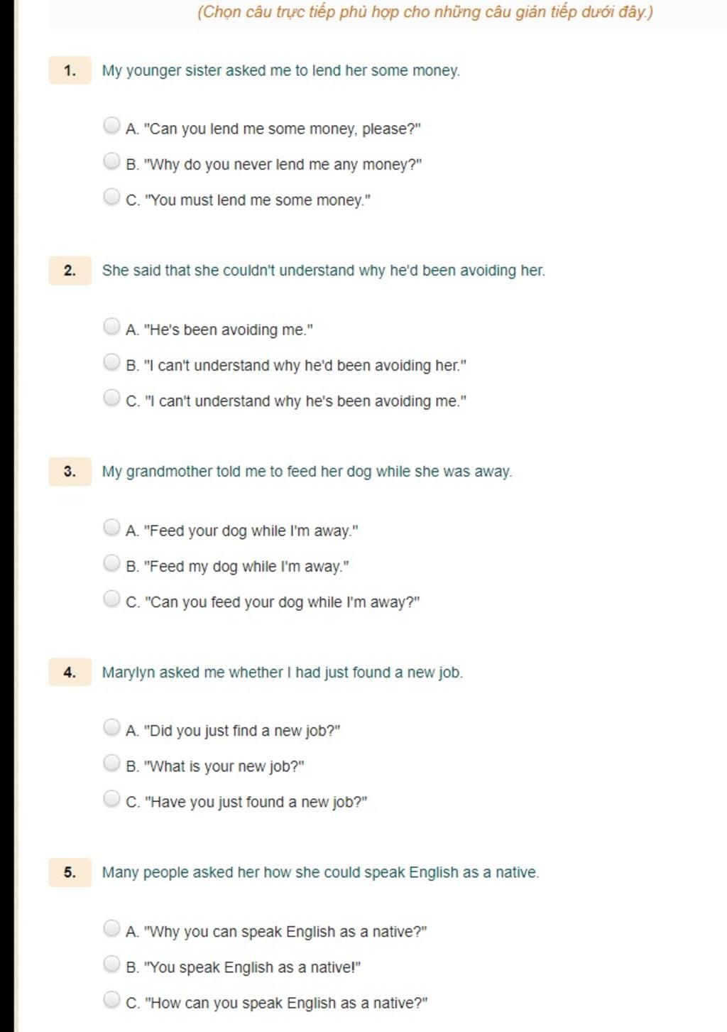 Loại C vì là câu tường thuật dạng câu yêu cầu