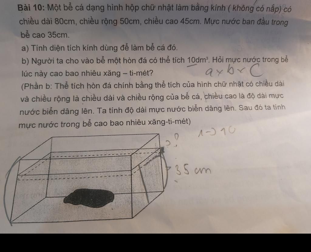 Đáp án: a) Diện tích kính để làm bể cá đó là: `15700\ cm^2`