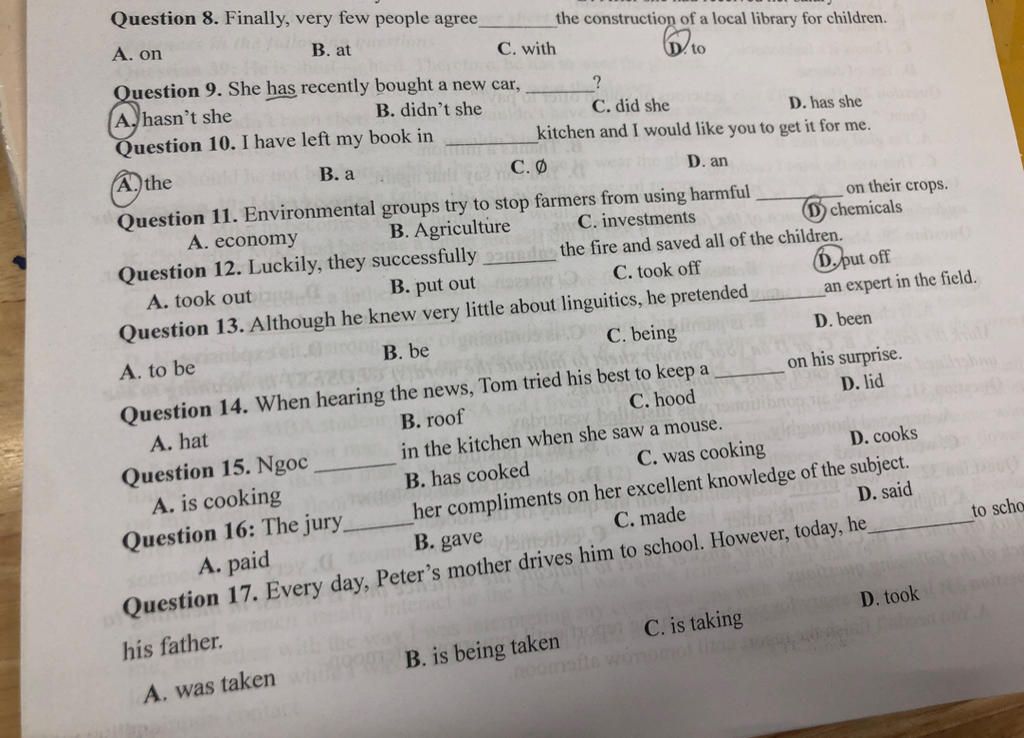 `8.` C ( agree with sth/sb : đồng ý với thứ gì/ ai đó )