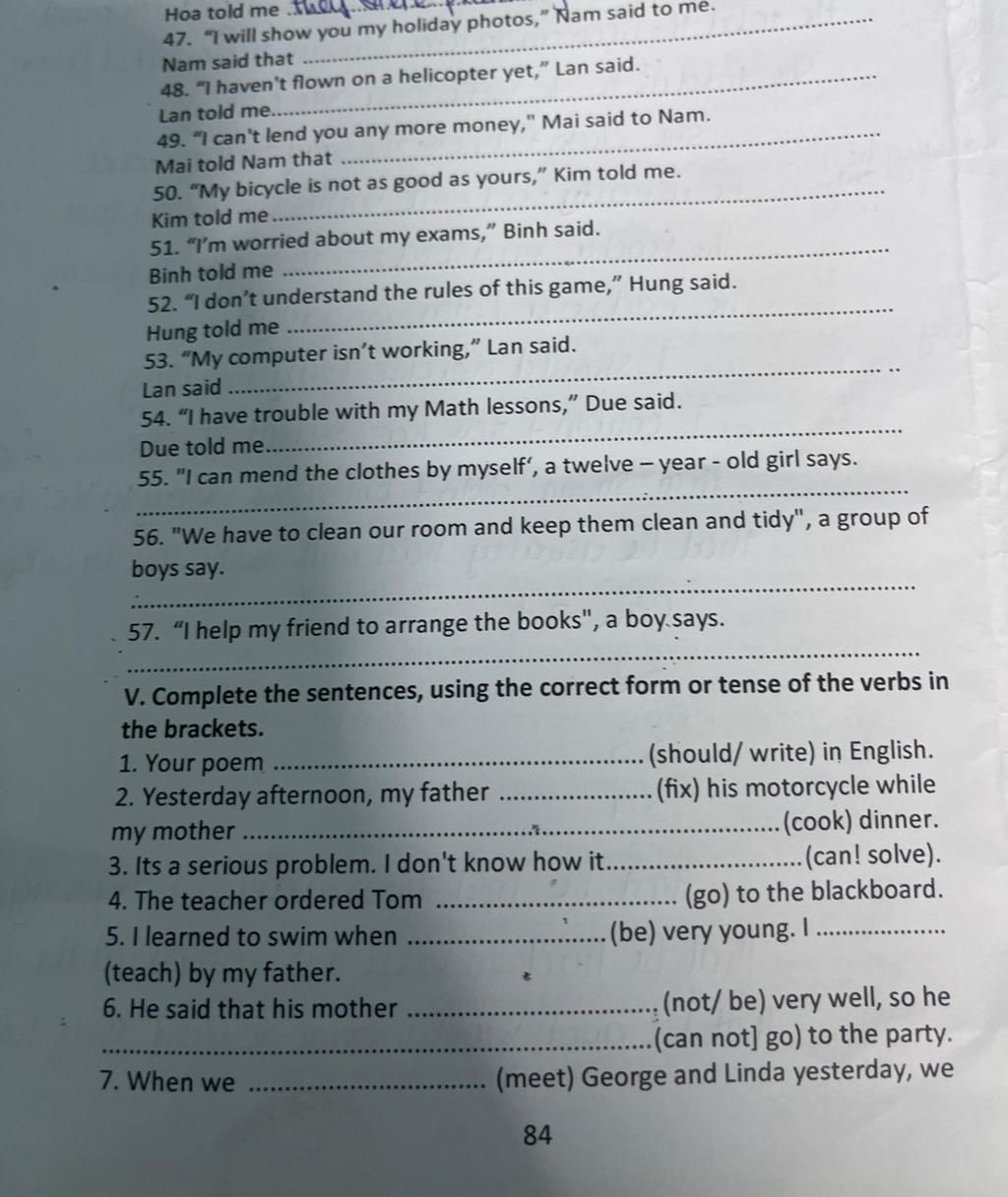 49. "I can't lend you any more money," Mai said to Nam.