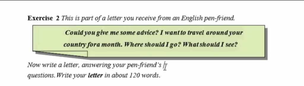 Exercise 2 This is part of a letter you receive from an English pen-friend.