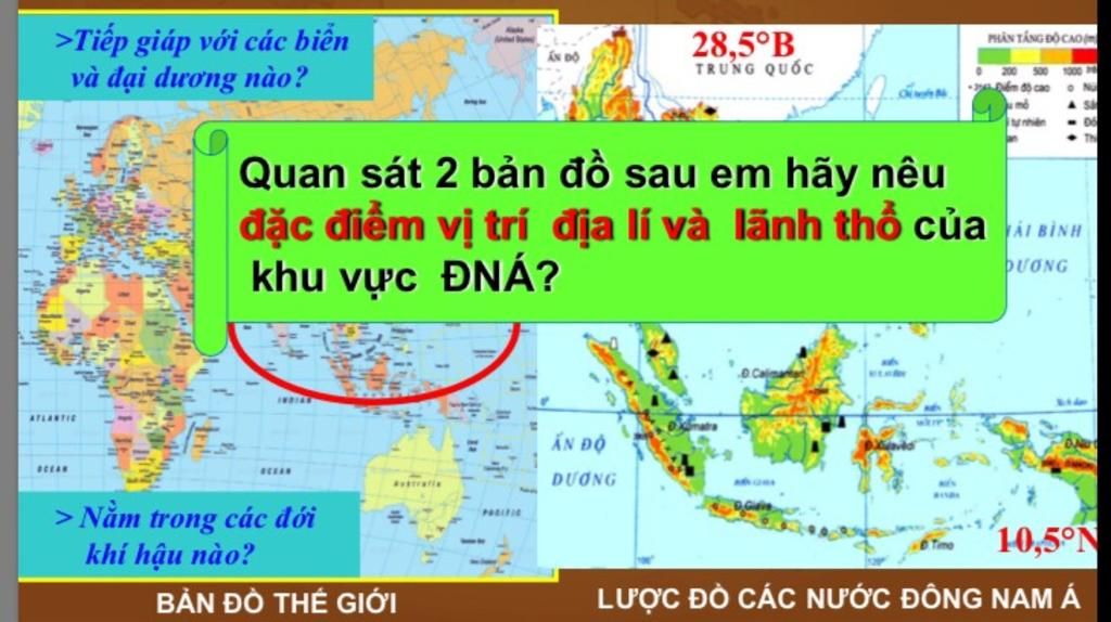 `-` Nằm ở phía Đông-Nam châu Á, tiếp giáp Thái Bình Dương và Ấn Độ Dương, cầu nối giữa lục địa Á-Âu với lục địa Úc.