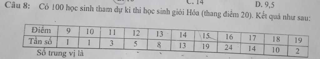 `→`Số trung vị là `1/2 . (15+16)=15,5`