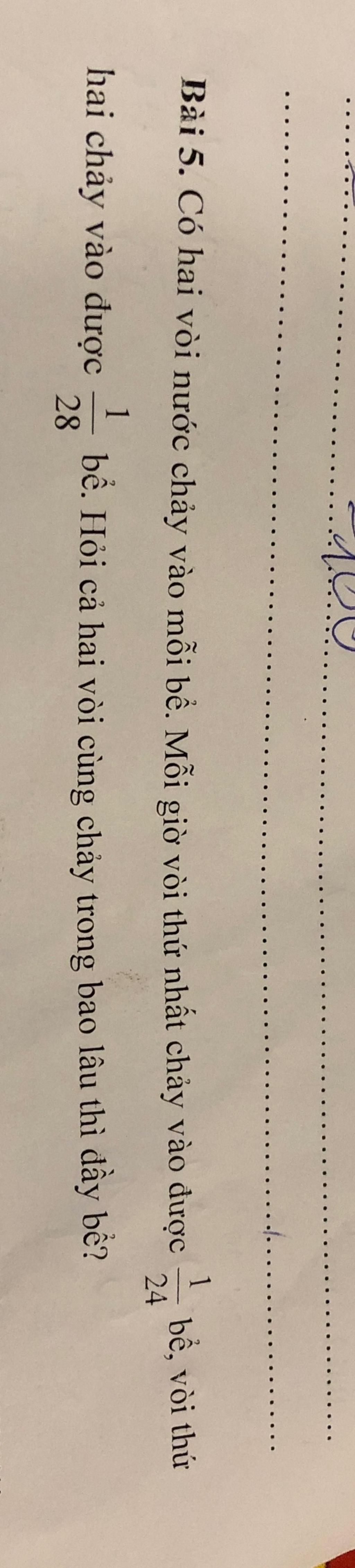 Thời gian hai vòi cùng chảy đến khi đầy bể là: