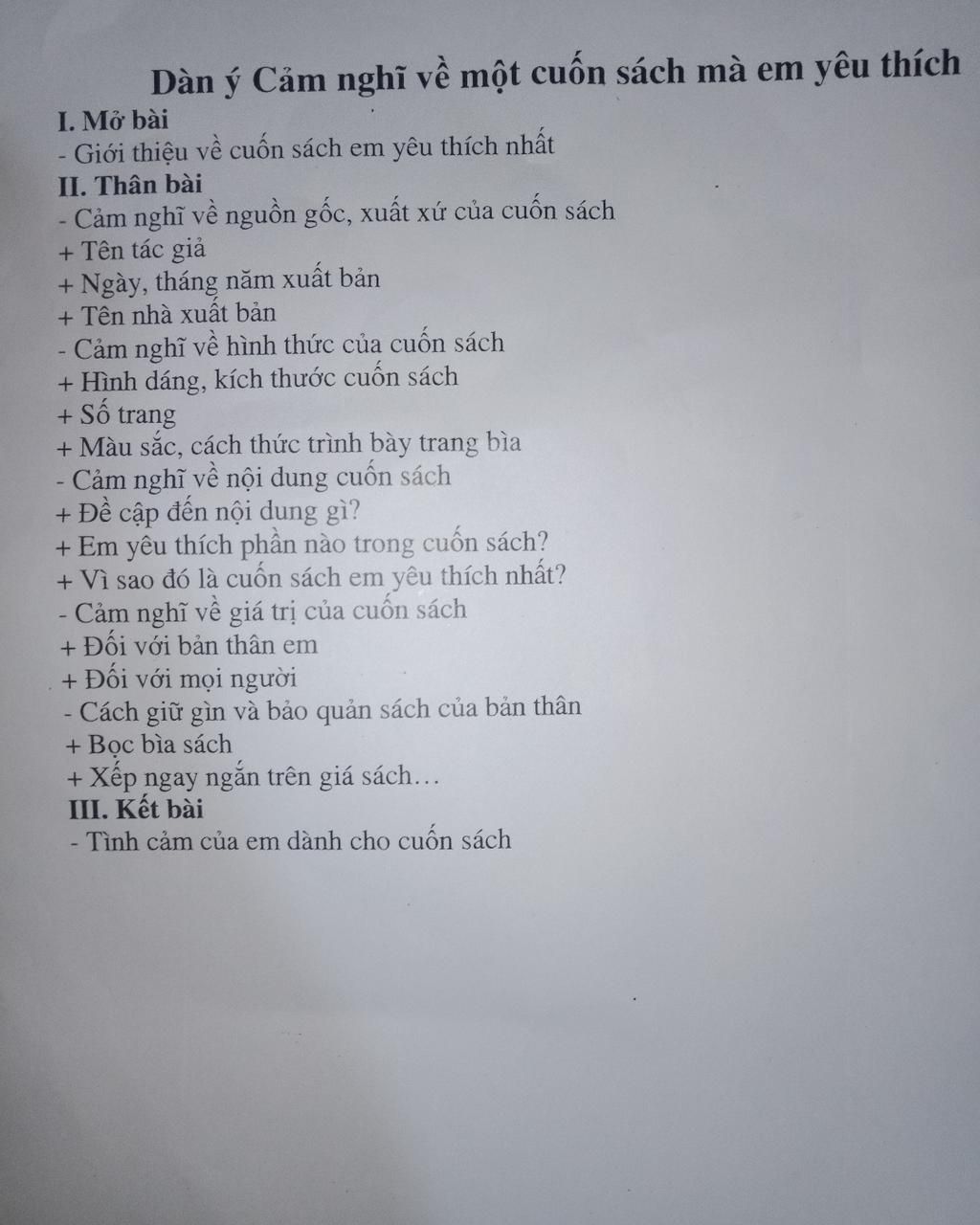 Dàn ý Cảm nghĩ về một cuốn sách mà em yêu thích