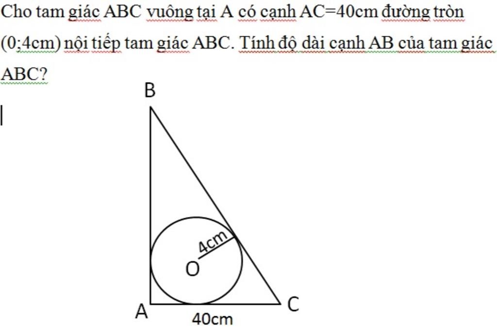 `<=> BC = sqrt(AB^2 + 40^2 )= sqrt(AB^2 + 1600 )` cm