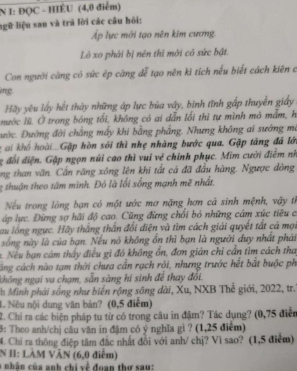 N I: ĐỌC - HIỂU (4,0 điểm)