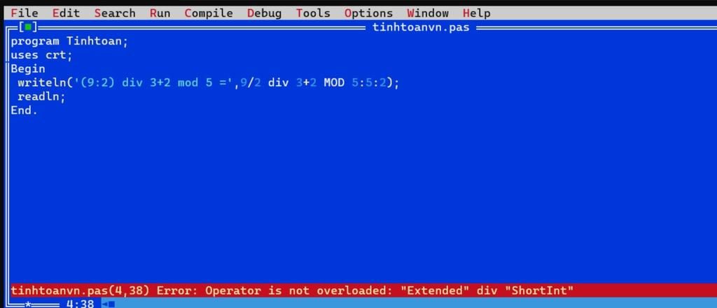 write('(9 div 2) div 3+2 mod 5=',(9 div 2) div 3+2 mod 5);