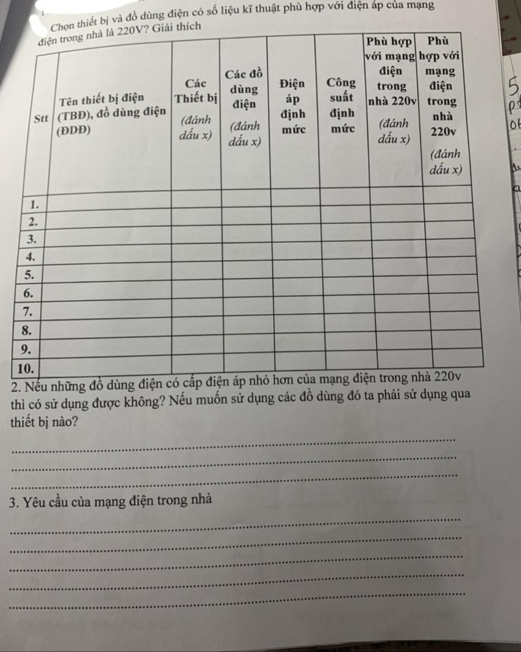 3. Yêu cầu của mạng điện trong nhà