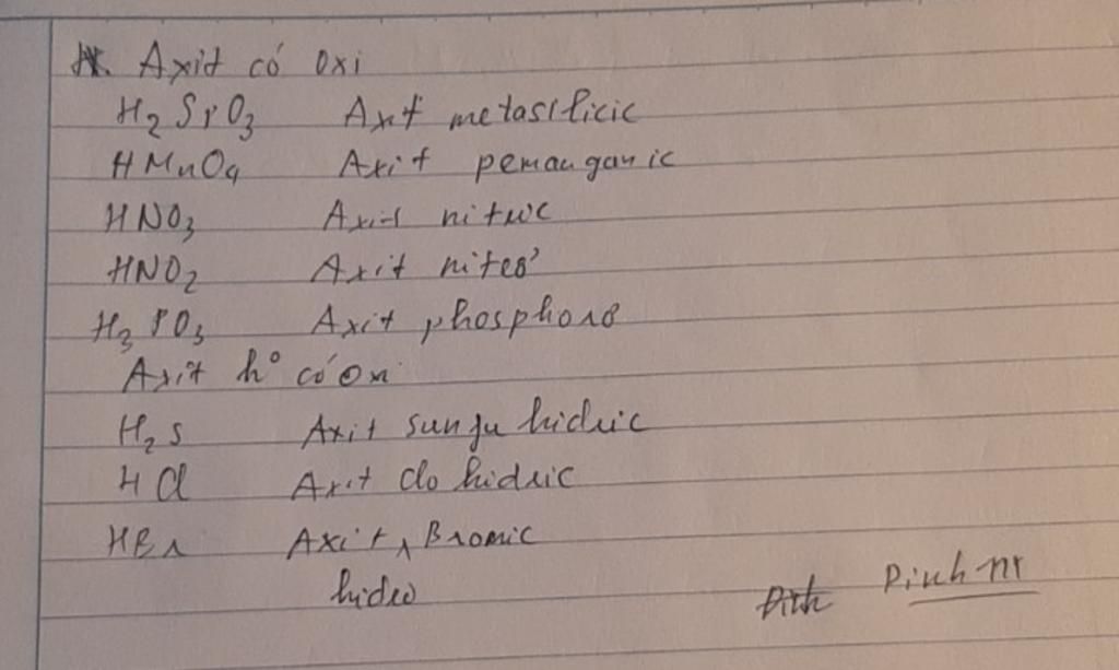- Axit có oxi: