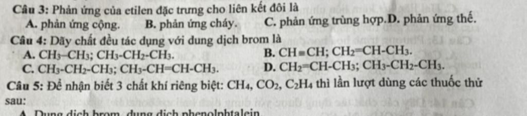Phản ứng đặc trưng của các chất có liên kết đôi là phản ứng cộng