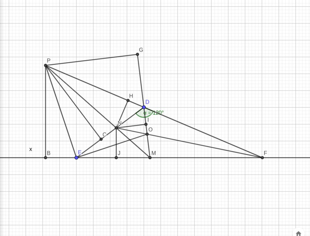b.Kẻ $PG\perp DM, PC\perp DE, PB\perp EF$