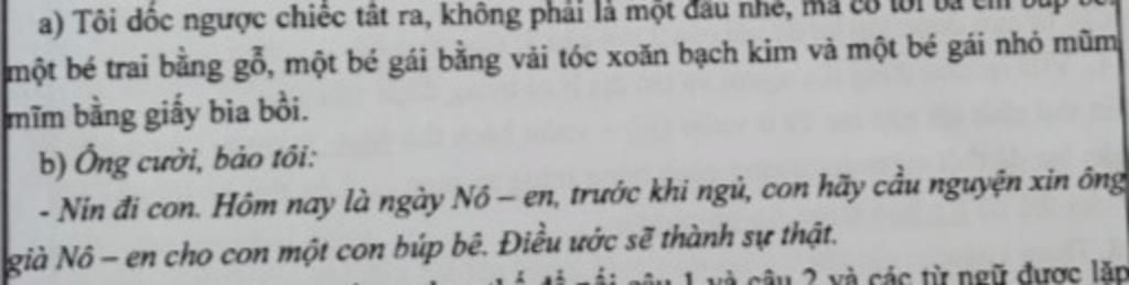 `+` Giải thích những món đồ ở trong chiếc tất mà nhân vật '' tôi '' dốc ngược ra .